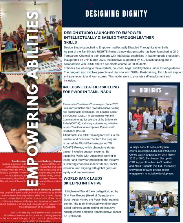 In a heartwarming step towards inclusion and empowerment, a Design Studio has been launched with the mission to provide intellectually disabled individuals an opportunity to learn, create, and thrive in the leather sector. This initiative goes beyond training, it is about dignity, creativity, and social transformation.